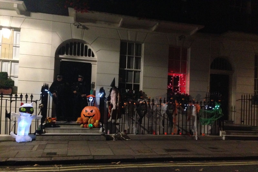 [dropcap]H[/dropcap]ats off, to Tony Blair, for producing such a fabulous Halloween display, outside his central London home. I run past his house everyday, and today noticed, the ghosts and ghouls, who have moved in! IT’S NOT AGAINST THE LAW TO HAVE SOME FUN, YOU KNOW, BLOG..?!