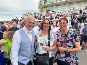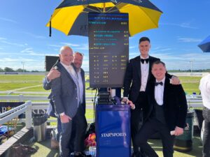 Meanwhile, the two ladies who won the restaurant competition (pictured below) came down to say thank you to Ben. Lofty went even money to try and level the book and laid an even £1500, 10/11 it was, but still a winner in the book for £275 as they set off. Queen Joni showed why see was so fancied for the Derby by winning impressively. The book did well not to lose on an evening where the results certainly couldn’t be described as bookie friendly.