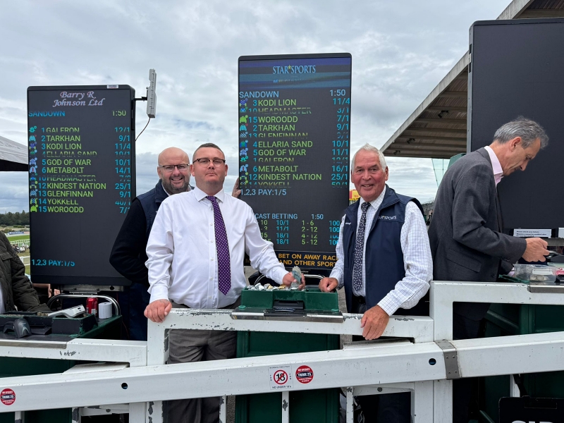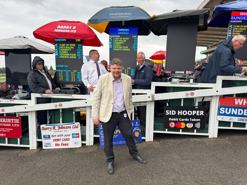 There were seven non runners in the Sandown finale but despite the depleted field and the rain there were still punters keen to have a go. One that wasn’t was Stephen Darbyshire, the punting hero to the masses had legged it after the fourth heat and headed down to Lingfield to ply his trade, he’s a grafter.