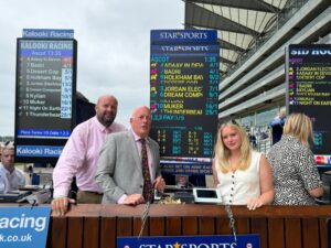 I was called upon to take some bets on the penultimate as Amberley took a comfort break, as usual it was a pleasure to meet people at the sharp end. Business was brisk enough for me, though of course I’m quite ring rusty on the old calls of ‘Eachee Wayzee Win or Placee’ stolen from Alfie Edwards many moons ago. My stint didn’t last long but was fun while it did, I happily handed back over to Amberley the professional. Over in Tatts it was the same story, the lads were grafting and had taken £1500 in very small money. The rails pitch had fielded double that including a bet of £2000 – £200 Champagne Prince as well as getting a £450 bet on a horse at Haydock beaten. Star are always happy to take away bets on any event if you are at the races.