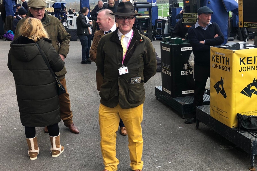 One of the things I love about racing is to be able to indulge in wearing some outlandish clobber. It’s amazing what you can get away with on racecourses over the year. Having said that, it’s a bit disconcerting when your own mum makes negative comments about your wheat coloured corduroys you asked her to by you for Christmas. I was looking forward to giving them their maiden runout today at Cheltenham today. Of course, such strides aren’t going to turn a head at the home of loud tweed and dazzling male trousers.